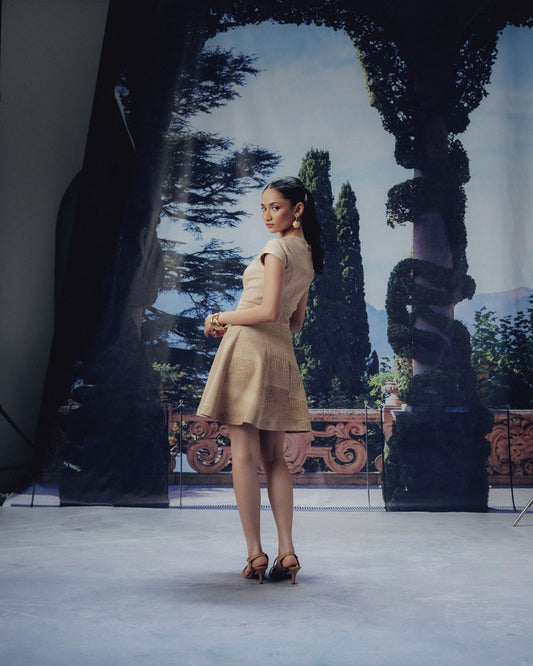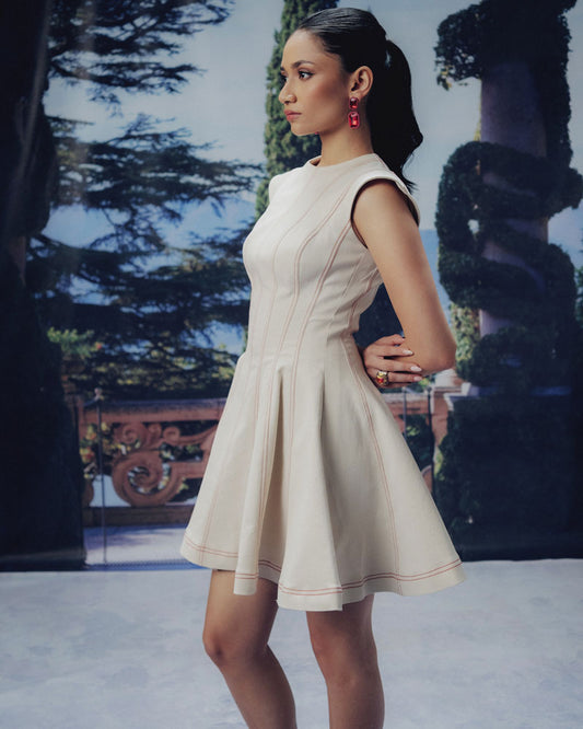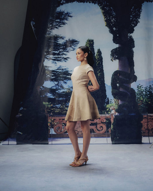 Sanddune Print Corset-Inspired Flair Dress with Cap-Sleeves
