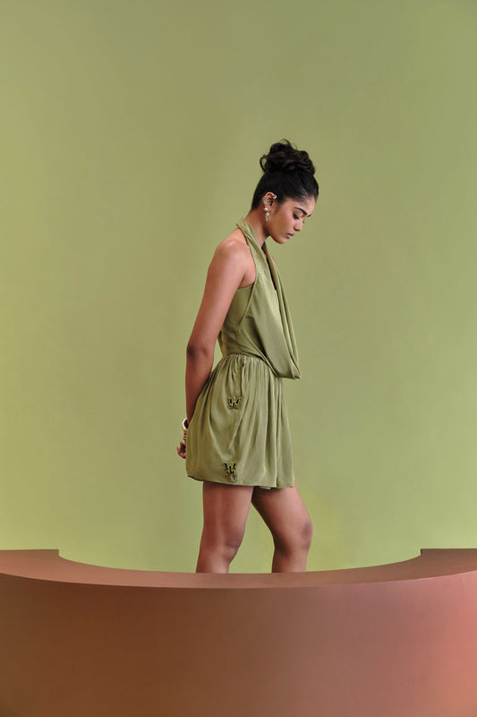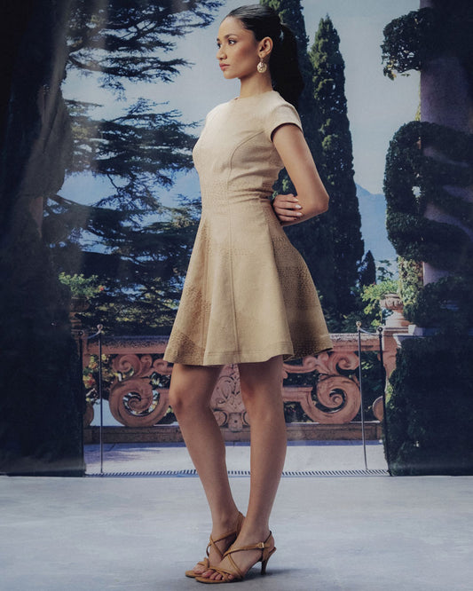 Sanddune Print Corset-Inspired Flair Dress with Cap-Sleeves