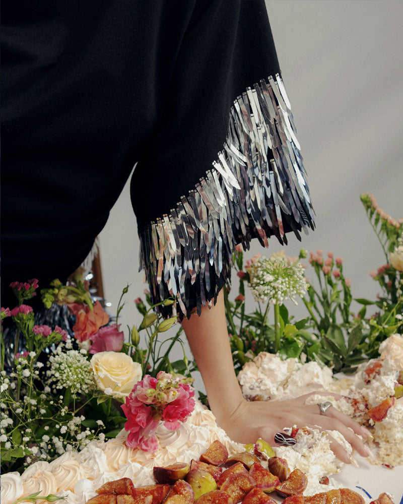 - Surface enhancement: Hand embroidered
